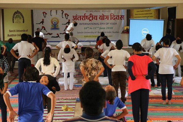 साँची बौद्ध-भारतीय ज्ञान अध्ययन विश्वविद्यालय के बारला, जिला रायसेन स्थित परिसर में अंतराष्ट्रीय योग दिवस का आयोजन किया गया। इस अवसर पर 21 से 25 जून, 2018 तक चलने वाली पॉंच दिवसीय 'योग' कार्यशाला का शुभारम्भ भी हुआ। कार्यशाला में प्रथम दिवस 'विश्वयोग' कार्यक्रम के अन्तर्गत योगनिद्रा एवं अंतर्मौन के प्रथम स्तर, योगाभ्यास के सामान्य नियम, लाभ एवं सावधानियों पर चर्चा की गई। 'अन्तर्राष्ट्रीय योग दिवस' का शुभारम्भ कुलपति आचार्य डॉ. यज्ञेश्वर एस. शास्त्री द्वारा वैदिक मन्त्रोच्चारण एवं उद्बोधन के साथ हुआ।