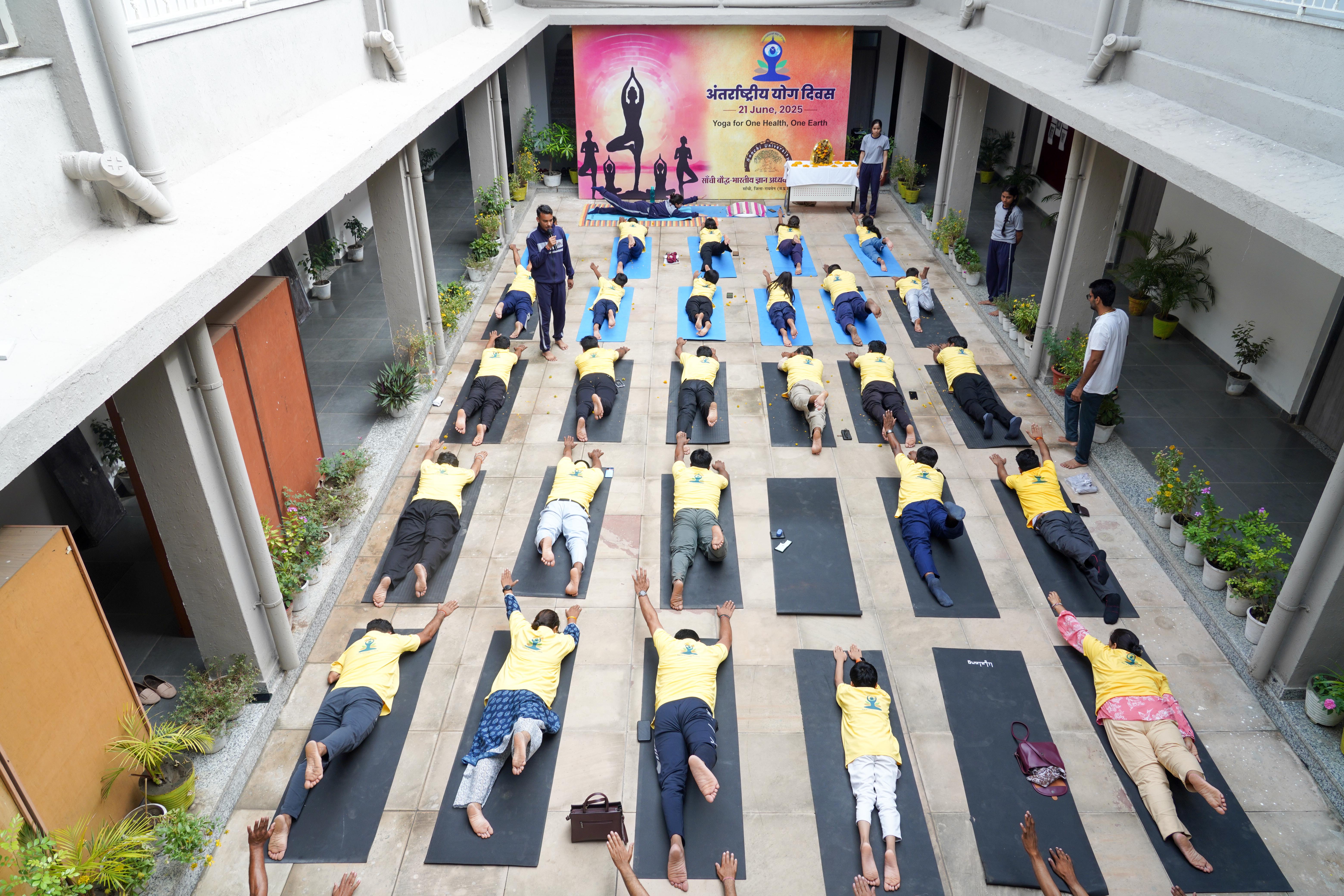 योग दिवस के अवसर पर ग्रीवा संचालन, स्कंद संचालन, ताड़ासन, कटिचक्रासन, अर्धचक्रासन, पादस्थासन, हस्तुनासन, त्रिकोणासन, नाणिसुधन, भ्रामरी, शीतलासन, शवासन, योग निद्रा और ध्यान कराए गए। मानव कल्याण के लिए मंत्र उच्चारण कराया गया।
